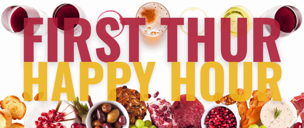 Join us for discounted drinks and tickets only available during our First Thursday Happy Hour: 5:30 pm to 6:30 pm. Tap beers, ciders, and wines are $1 off, while tickets to our current production are $20 for preview nights and/or 20% off other performances (excluding opening and closing nights) when you buy directly from our box office during this event. Also available are coffee from Dawson Taylor and treats from The Chocolat Bar, City Peanut Shop, and Yeast & West Natural Bakery. Get a ticket to that night’s show and after happy hour is over the house opens and you can relax in the theater or the bar!